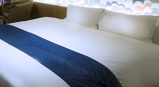ゆっくりとお休みいただけるように、広くて心地良いシモンズベッドをご用意いたしました。