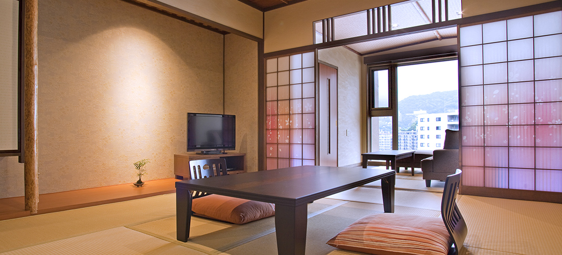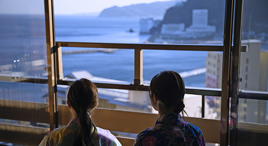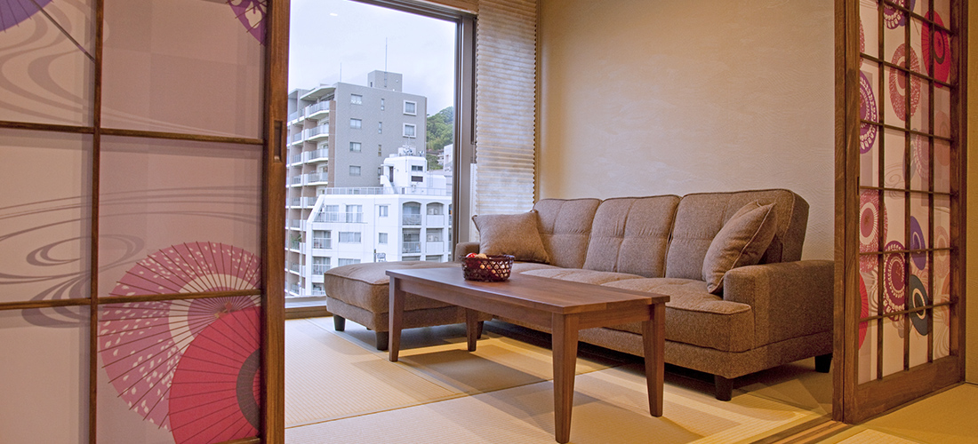女性の為の新タイプの和室がコンセプト。美しい和風の柄をデザインした障子を初め、リラックスソファー、ボディシャワーなど女性に嬉しい装備が充実した、熱海の旅情いっぱいのお部屋です。遊び心と居心地感を供えたお部屋で、女性同士やカップルでのご旅行で人気です。基本客室のAタイプと、お風呂のついたBタイプのお部屋がございます。