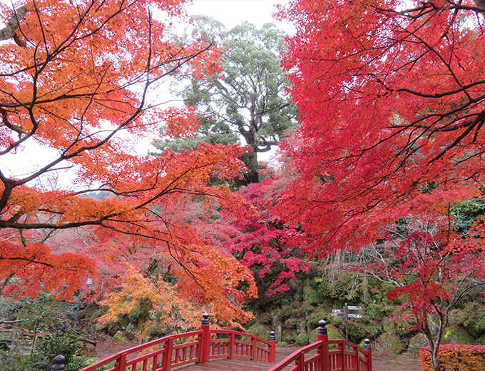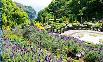 名勝「錦ケ浦」の地形を活かした、広大な土地に広がるアカオローズ&ハーブガーデン。世界中から集められたバラやハーブの他、地元の桜や菜の花などを愛でることができます。