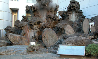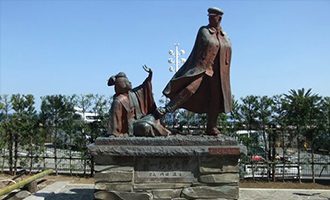 ♪熱海の海岸散歩する 貫一お宮の二人連れ♪ とも歌われ、熱海の海岸は、尾崎紅葉作『金色夜叉』の主人公貫一とお宮の泣き別れの場面として全国的に有名となりました。そのお宮の名に因んでつけられた松が海岸近くの緑地帯の中にある「お宮の松」です。