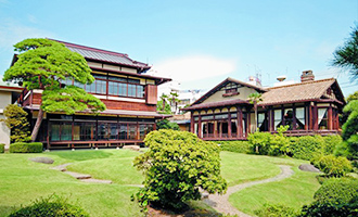 3,000坪の敷地に広がる緑豊かな庭園と大正、昭和のロマンと風格に満ちた和館、洋館。山本有三、太宰治、舟橋聖一など数多くの文豪にも愛された名邸(熱海市指定有形文化財)で、観光名所としても公開されています。