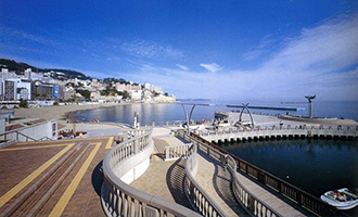 「恋人の聖地」に認定されている観光スポットで、テラス尖端にある噴水には恋人達が愛を誓い合うことの出来るモニュメントもある、カップル・ご夫婦に人気のスポット。南欧をイメージしたデッキやヨットハーバーなどもロマンチックです。